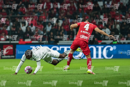 Toluca, Estado de México, 18 de octubre de 2025. Paulinho y Guillermo Allison, durante el partido correspondiente a la jornada 13 del torneo Apertura 2025 de la Liga BBVA MX, entre los Diablos Rojos del Toluca y los Gallos Blancos del Querétaro, realizado en el estadio Nemesio Diez. Foto: Imago7/ Arturo Hernandez