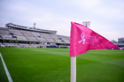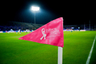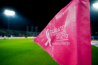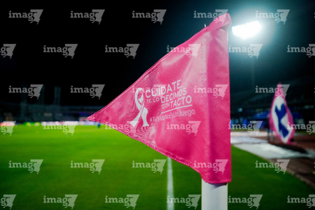 Ciudad de México, 18 de octubre de 2025. Banderin de tiro de esquina de la Campaña Rosa para la concientización del Cáncer de Mama, durante el partido correspondiente a la jornada 13 del torneo Apertura 2025 de la Liga BBVA MX, entre la Máquina Celeste del Cruz Azul y las Águilas del América, realizado en el estadio Olímpico Universitario. Foto: Imago7/Diego Padilla