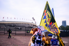 Ciudad de México, 18 de octubre de 2025. Benderas, durante el partido correspondiente a la jornada 13 del torneo Apertura 2025 de la Liga BBVA MX, entre la Máquina Celeste del Cruz Azul y las Águilas del América, realizado en el estadio Olímpico Universitario. Foto: Imago7/ Alexis Chavez