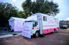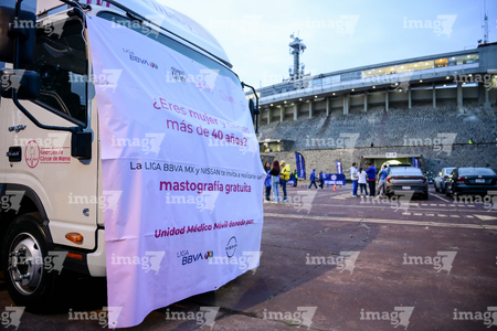 Ciudad de México, 18 de octubre de 2025. Módulo de mastografías de la Campaña Rosa para la concientización del Cáncer de Mama, durante el partido correspondiente a la jornada 13 del torneo Apertura 2025 de la Liga BBVA MX, entre la Máquina Celeste del Cruz Azul y las Águilas del América, realizado en el estadio Olímpico Universitario. Foto: Imago7/ Alexis Chavez