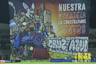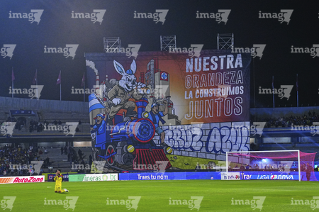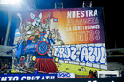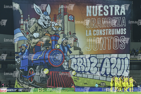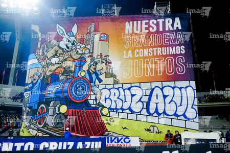 Ciudad de México, 18 de octubre de 2025. tifo, durante el partido correspondiente a la jornada 13 del torneo Apertura 2025 de la Liga BBVA MX, entre la Máquina Celeste del Cruz Azul y las Águilas del América, realizado en el estadio Olímpico Universitario. Foto: Imago7/Diego Padilla