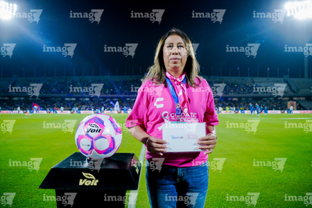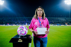 Ciudad de México, 18 de octubre de 2025. Embajadora de la Campaña Rosa para la concientización del Cáncer de Mama, durante el partido correspondiente a la jornada 13 del torneo Apertura 2025 de la Liga BBVA MX, entre la Máquina Celeste del Cruz Azul y las Águilas del América, realizado en el estadio Olímpico Universitario. Foto: Imago7/Diego Padilla