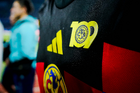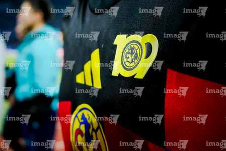 Ciudad de México, 18 de octubre de 2025. Detalle de parche de 109 años del Club América en jersey de Brian Rodríguez, durante el partido correspondiente a la jornada 13 del torneo Apertura 2025 de la Liga BBVA MX, entre la Máquina Celeste del Cruz Azul y las Águilas del América, realizado en el estadio Olímpico Universitario. Foto: Imago7/Diego Padilla