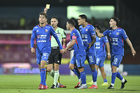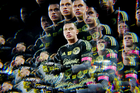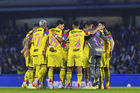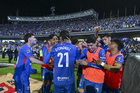 Ciudad de México, 18 de octubre de 2025. Jugadores del América al termino del partido correspondiente a la jornada 13 del torneo Apertura 2025 de la Liga BBVA MX, entre la Máquina Celeste del Cruz Azul y las Águilas del América, realizado en el estadio Olímpico Universitario. Foto: Imago7/ Etzel Espinosa