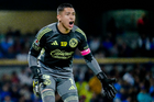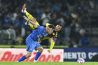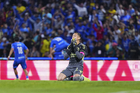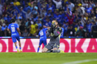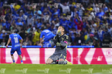 Ciudad de México, 18 de octubre de 2025. Angel Malagón en lamento, durante el partido correspondiente a la jornada 13 del torneo Apertura 2025 de la Liga BBVA MX, entre la Máquina Celeste del Cruz Azul y las Águilas del América, realizado en el estadio Olímpico Universitario. Foto: Imago7/ Manlio Contreras