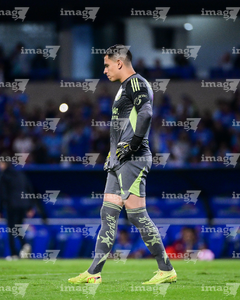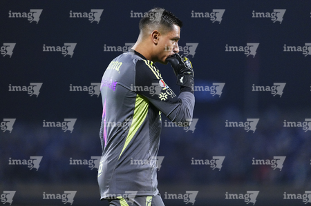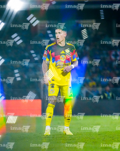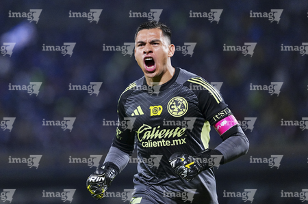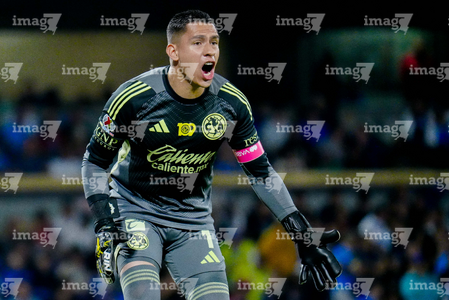 Ciudad de México, 18 de octubre de 2025. Luis Malagón, durante el partido correspondiente a la jornada 13 del torneo Apertura 2025 de la Liga BBVA MX, entre la Máquina Celeste del Cruz Azul y las Águilas del América, realizado en el estadio Olímpico Universitario. Foto: Imago7/Diego Padilla