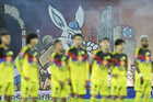 Ciudad de México, 18 de octubre de 2025. Tifo, durante el partido correspondiente a la jornada 13 del torneo Apertura 2025 de la Liga BBVA MX, entre la Máquina Celeste del Cruz Azul y las Águilas del América, realizado en el estadio Olímpico Universitario. Foto: Imago7/ Manlio Contreras
