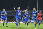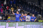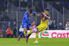 Ciudad de México, 18 de octubre de 2025. Gabriel Fernández "Toro" anota gol, durante el partido correspondiente a la jornada 13 del torneo Apertura 2025 de la Liga BBVA MX, entre la Máquina Celeste del Cruz Azul y las Águilas del América, realizado en el estadio Olímpico Universitario. Foto: Imago7/ Manlio Contreras