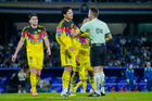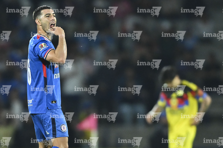 Ciudad de México, 18 de octubre de 2025. Brian Rodríguez en reclamo, durante el partido correspondiente a la jornada 13 del torneo Apertura 2025 de la Liga BBVA MX, entre la Máquina Celeste del Cruz Azul y las Águilas del América, realizado en el estadio Olímpico Universitario. Foto: Imago7/Diego Padilla