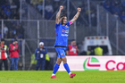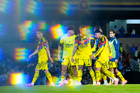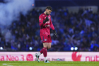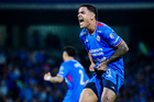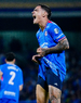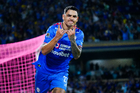 Ciudad de México, 18 de octubre de 2025. Brian Rodríguez en festejo de gol, durante el partido correspondiente a la jornada 13 del torneo Apertura 2025 de la Liga BBVA MX, entre la Máquina Celeste del Cruz Azul y las Águilas del América, realizado en el estadio Olímpico Universitario. Foto: Imago7/ Etzel Espinosa