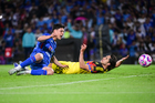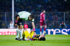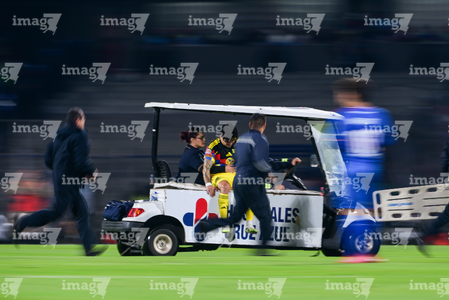 Ciudad de México, 18 de octubre de 2025. Víctor Dávila resultó lesionado, durante el partido correspondiente a la jornada 13 del torneo Apertura 2025 de la Liga BBVA MX, entre la Máquina Celeste del Cruz Azul y las Águilas del América, realizado en el estadio Olímpico Universitario. Foto: Imago7/Diego Padilla