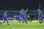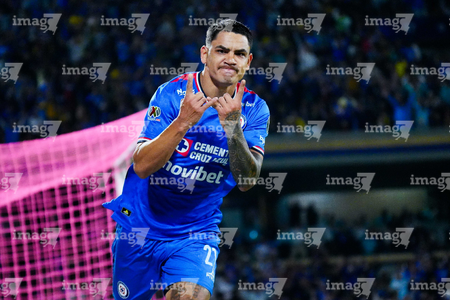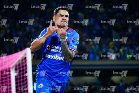 Ciudad de México, 18 de octubre de 2025. Gabriel Fernández "Toro" en festejo de gol, durante el partido correspondiente a la jornada 13 del torneo Apertura 2025 de la Liga BBVA MX, entre la Máquina Celeste del Cruz Azul y las Águilas del América, realizado en el estadio Olímpico Universitario. Foto: Imago7/Diego Padilla
