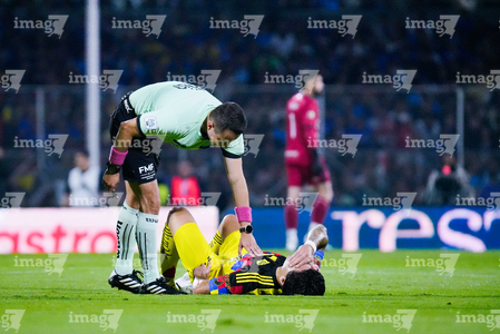 Ciudad de México, 18 de octubre de 2025. Víctor Dávila resultó lesionado, durante el partido correspondiente a la jornada 13 del torneo Apertura 2025 de la Liga BBVA MX, entre la Máquina Celeste del Cruz Azul y las Águilas del América, realizado en el estadio Olímpico Universitario. Foto: Imago7/ Alexis Chavez