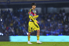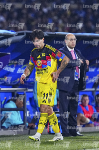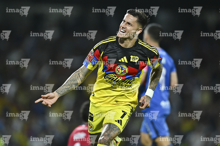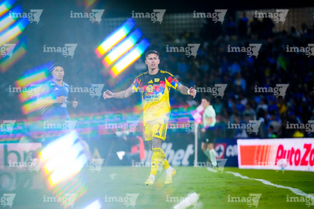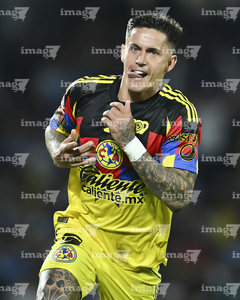 Ciudad de México, 18 de octubre de 2025. Rodrigo Aguirre, durante el partido correspondiente a la jornada 13 del torneo Apertura 2025 de la Liga BBVA MX, entre la Máquina Celeste del Cruz Azul y las Águilas del América, realizado en el estadio Olímpico Universitario. Foto: Imago7/Diego Padilla