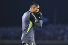 Ciudad de México, 18 de octubre de 2025. Luis Malagón en lamento, durante el partido correspondiente a la jornada 13 del torneo Apertura 2025 de la Liga BBVA MX, entre la Máquina Celeste del Cruz Azul y las Águilas del América, realizado en el estadio Olímpico Universitario. Foto: Imago7/ Alexis Chavez
