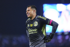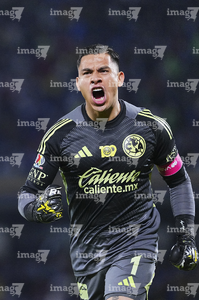 Ciudad de México, 18 de octubre de 2025. Angel Malagón en festejo , durante el partido correspondiente a la jornada 13 del torneo Apertura 2025 de la Liga BBVA MX, entre la Máquina Celeste del Cruz Azul y las Águilas del América, realizado en el estadio Olímpico Universitario. Foto: Imago7/ Manlio Contreras