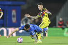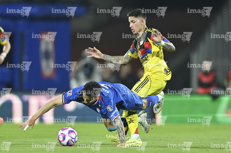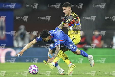 Ciudad de México, 18 de octubre de 2025. Sebastián Cáceres y Luka Romero, durante el partido correspondiente a la jornada 13 del torneo Apertura 2025 de la Liga BBVA MX, entre la Máquina Celeste del Cruz Azul y las Águilas del América, realizado en el estadio Olímpico Universitario. Foto: Imago7/ Alexis Chavez