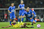 Ciudad de México, 18 de octubre de 2025. José Paradela y Allan Saint-Maximin, durante el partido correspondiente a la jornada 13 del torneo Apertura 2025 de la Liga BBVA MX, entre la Máquina Celeste del Cruz Azul y las Águilas del América, realizado en el estadio Olímpico Universitario. Foto: Imago7/Diego Padilla