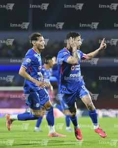 Ciudad de México, 18 de octubre de 2025. Ignacio Rivero en festejo de gol, durante el partido correspondiente a la jornada 13 del torneo Apertura 2025 de la Liga BBVA MX, entre la Máquina Celeste del Cruz Azul y las Águilas del América, realizado en el estadio Olímpico Universitario. Foto: Imago7/ Manlio Contreras