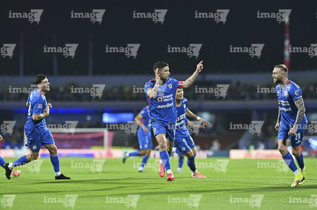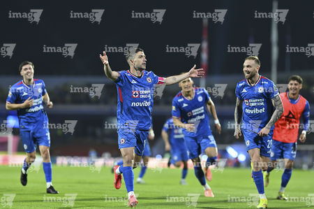 Ciudad de México, 18 de octubre de 2025. Andres Gudiño en festejo, durante el partido correspondiente a la jornada 13 del torneo Apertura 2025 de la Liga BBVA MX, entre la Máquina Celeste del Cruz Azul y las Águilas del América, realizado en el estadio Olímpico Universitario. Foto: Imago7/ Manlio Contreras