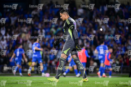 Ciudad de México, 18 de octubre de 2025. Andrés Gudiño, durante el partido correspondiente a la jornada 13 del torneo Apertura 2025 de la Liga BBVA MX, entre la Máquina Celeste del Cruz Azul y las Águilas del América, realizado en el estadio Olímpico Universitario. Foto: Imago7/ Etzel Espinosa