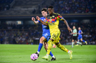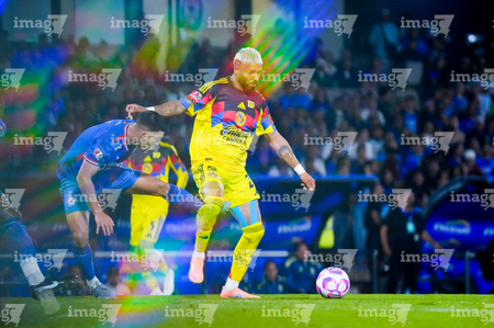 Ciudad de México, 18 de octubre de 2025. Brian Rodríguez, durante el partido correspondiente a la jornada 13 del torneo Apertura 2025 de la Liga BBVA MX, entre la Máquina Celeste del Cruz Azul y las Águilas del América, realizado en el estadio Olímpico Universitario. Foto: Imago7/Diego Padilla
