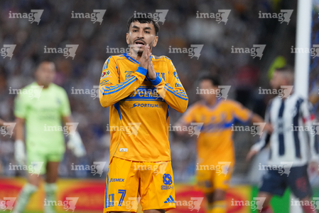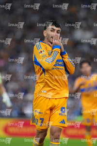 Guadalupe, Nuevo León, 1 de noviembre de 2025. , durante el partido correspondiente a la jornada 16 del torneo Apertura 2025 de la Liga BBVA MX, entre los Rayados del Monterrey y los Tigres de la UANL, realizado en el estadio BBVA. Foto: Imago7/