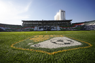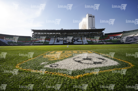 León, Guanajuato, 8 de noviembre de 2025. Escudo del León, durante el partido correspondiente a la jornada 17 del torneo Apertura 2025 de la Liga BBVA MX, entre los Esmeraldas del León y el Club Puebla, realizado en el estadio León. Foto: Imago7/ Sebastian Laureano Miranda
