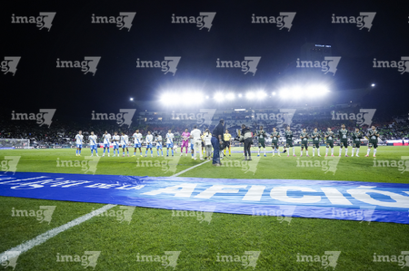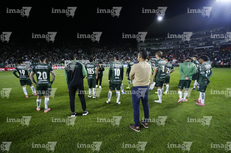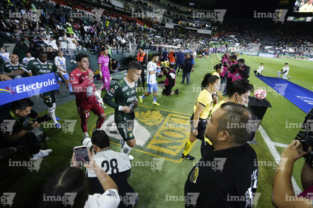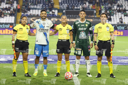 León, Guanajuato, 8 de noviembre de 2025. Protocolo, durante el partido correspondiente a la jornada 17 del torneo Apertura 2025 de la Liga BBVA MX, entre los Esmeraldas del León y el Club Puebla, realizado en el estadio León. Foto: Imago7/ Sebastian Laureano Miranda