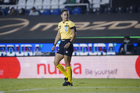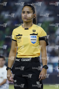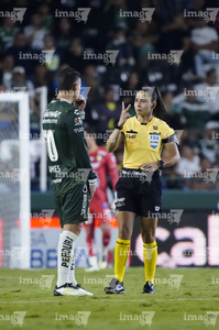 León, Guanajuato, 8 de noviembre de 2025. Karen Hernández Andrade, árbitra central, durante el partido correspondiente a la jornada 17 del torneo Apertura 2025 de la Liga BBVA MX, entre los Esmeraldas del León y el Club Puebla, realizado en el estadio León. Foto: Imago7/ Sebastian Laureano Miranda