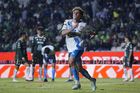 León, Guanajuato, 8 de noviembre de 2025. Portigoles, durante el partido correspondiente a la jornada 17 del torneo Apertura 2025 de la Liga BBVA MX, entre los Esmeraldas del León y el Club Puebla, realizado en el estadio León. Foto: Imago7/ Sebastian Laureano Miranda