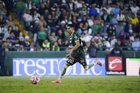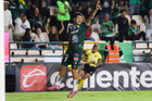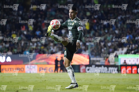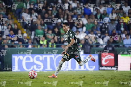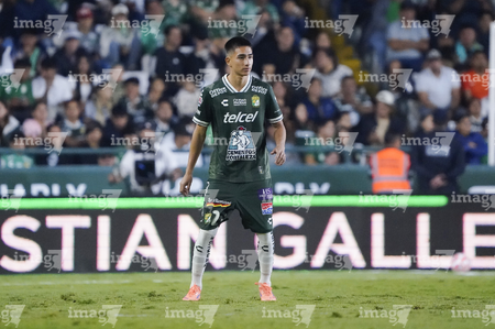 León, Guanajuato, 8 de noviembre de 2025. Nicolás Fonseca (I), durante el partido correspondiente a la jornada 17 del torneo Apertura 2025 de la Liga BBVA MX, entre los Esmeraldas del León y el Club Puebla, realizado en el estadio León. Foto: Imago7/ Sebastian Laureano Miranda