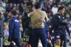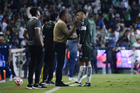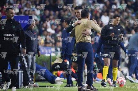 León, Guanajuato, 8 de noviembre de 2025. James Rodríguez e Ignacio Ambriz, director técnico, durante el partido correspondiente a la jornada 17 del torneo Apertura 2025 de la Liga BBVA MX, entre los Esmeraldas del León y el Club Puebla, realizado en el estadio León. Foto: Imago7/ Sebastian Laureano Miranda
