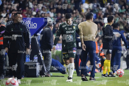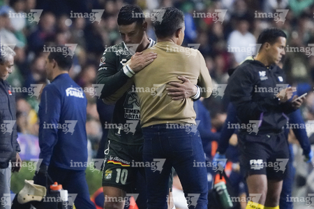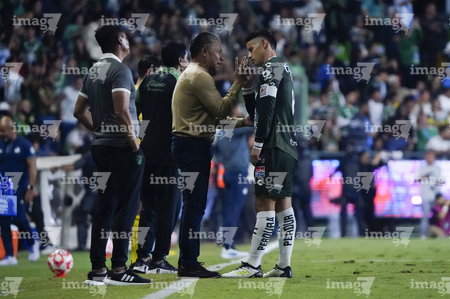 León, Guanajuato, 8 de noviembre de 2025. Hernán Cristante, director técnico y Julio González, durante el partido correspondiente a la jornada 17 del torneo Apertura 2025 de la Liga BBVA MX, entre los Esmeraldas del León y el Club Puebla, realizado en el estadio León. Foto: Imago7/ Sebastian Laureano Miranda