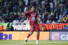 León, Guanajuato, 8 de noviembre de 2025. Iván Moreno en festejo de gol, durante el partido correspondiente a la jornada 17 del torneo Apertura 2025 de la Liga BBVA MX, entre los Esmeraldas del León y el Club Puebla, realizado en el estadio León. Foto: Imago7/ Israel Lopez
