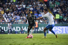 León, Guanajuato, 8 de noviembre de 2025. Jordi Cortizo (D), durante el partido correspondiente a la jornada 17 del torneo Apertura 2025 de la Liga BBVA MX, entre los Esmeraldas del León y el Club Puebla, realizado en el estadio León. Foto: Imago7/ Sebastian Laureano Miranda