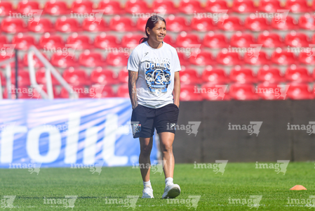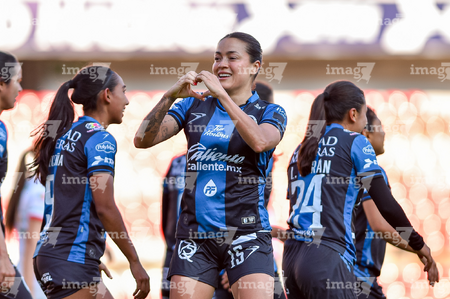 Querétaro, Querétaro, 3 de octubre de 2025. Portigoles, durante el partido correspondiente a la jornada 14 del torneo Apertura 2025 de la Liga BBVA MX Femenil, entre el Club Querétaro y las Centellas del Necaxa, realizado en La Corregidora. Foto: Imago7/ Hugo Martinez