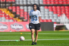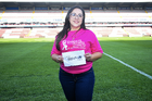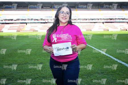 Querétaro, Querétaro, 3 de octubre de 2025. Embajadora de la Campaña Rosa para la concientización del Cáncer de Mama, durante el partido correspondiente a la jornada 14 del torneo Apertura 2025 de la Liga BBVA MX Femenil, entre el Club Querétaro y las Centellas del Necaxa, realizado en La Corregidora. Foto: Imago7/