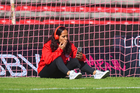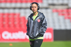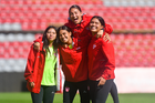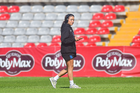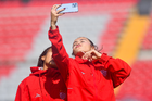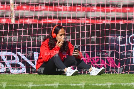 Querétaro, Querétaro, 3 de octubre de 2025. Corina Gómez se toma selfie, durante el partido correspondiente a la jornada 14 del torneo Apertura 2025 de la Liga BBVA MX Femenil, entre el Club Querétaro y las Centellas del Necaxa, realizado en La Corregidora. Foto: Imago7/