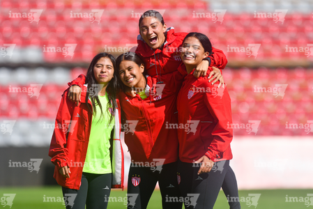 Querétaro, Querétaro, 3 de octubre de 2025. Foto de equipo de Necaxa femenil, durante el partido correspondiente a la jornada 14 del torneo Apertura 2025 de la Liga BBVA MX Femenil, entre el Club Querétaro y las Centellas del Necaxa, realizado en La Corregidora. Foto: Imago7/