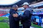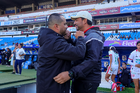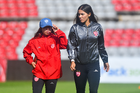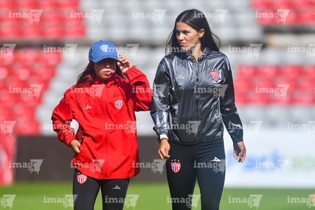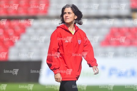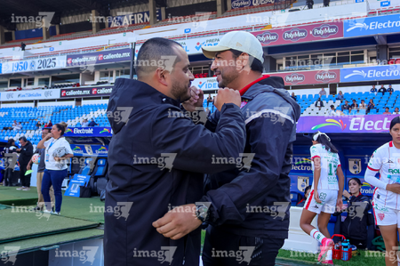 Querétaro, Querétaro, 3 de octubre de 2025. Fernanda Samayoa y Christian Astorga, durante el partido correspondiente a la jornada 14 del torneo Apertura 2025 de la Liga BBVA MX Femenil, entre el Club Querétaro y las Centellas del Necaxa, realizado en La Corregidora. Foto: Imago7/ Hugo Martinez