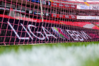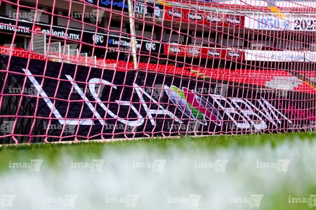Querétaro, Querétaro, 3 de octubre de 2025. Red de porteria de la Campaña Rosa para la concientización del Cáncer de Mama, durante el partido correspondiente a la jornada 14 del torneo Apertura 2025 de la Liga BBVA MX Femenil, entre el Club Querétaro y las Centellas del Necaxa, realizado en La Corregidora. Foto: Imago7/ Hugo Martinez
