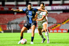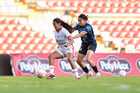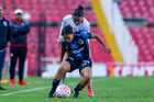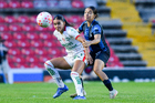 Querétaro, Querétaro, 3 de octubre de 2025. Daniela Carrandi y Winibian Peralta, durante el partido correspondiente a la jornada 14 del torneo Apertura 2025 de la Liga BBVA MX Femenil, entre el Club Querétaro y las Centellas del Necaxa, realizado en La Corregidora. Foto: Imago7/