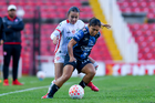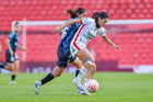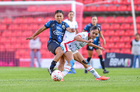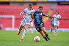 Querétaro, Querétaro, 3 de octubre de 2025. Avril Navarro (I), durante el partido correspondiente a la jornada 14 del torneo Apertura 2025 de la Liga BBVA MX Femenil, entre el Club Querétaro y las Centellas del Necaxa, realizado en La Corregidora. Foto: Imago7/