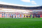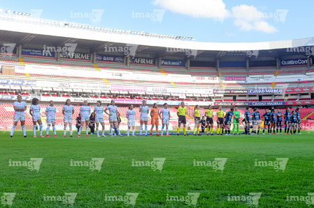 Querétaro, Querétaro, 3 de octubre de 2025. Protocolo, durante el partido correspondiente a la jornada 14 del torneo Apertura 2025 de la Liga BBVA MX Femenil, entre el Club Querétaro y las Centellas del Necaxa, realizado en La Corregidora. Foto: Imago7/ Hugo Martinez