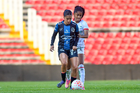 Querétaro, Querétaro, 3 de octubre de 2025. Daniela Carrandi y Nataly Roque, durante el partido correspondiente a la jornada 14 del torneo Apertura 2025 de la Liga BBVA MX Femenil, entre el Club Querétaro y las Centellas del Necaxa, realizado en La Corregidora. Foto: Imago7/