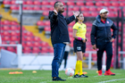 Querétaro, Querétaro, 3 de octubre de 2025. Fernando Samayoa, durante el partido correspondiente a la jornada 14 del torneo Apertura 2025 de la Liga BBVA MX Femenil, entre el Club Querétaro y las Centellas del Necaxa, realizado en La Corregidora. Foto: Imago7/