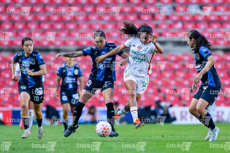 Querétaro, Querétaro, 3 de octubre de 2025. María Acosta, Samantha Calvillo, Ana Yolanda Jiménez y Brenda Vega, durante el partido correspondiente a la jornada 14 del torneo Apertura 2025 de la Liga BBVA MX Femenil, entre el Club Querétaro y las Centellas del Necaxa, realizado en La Corregidora. Foto: Imago7/