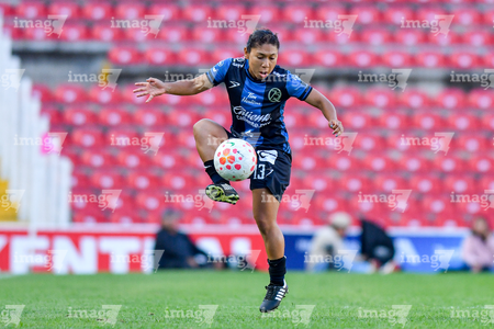 Querétaro, Querétaro, 3 de octubre de 2025. Andrea Velarde, durante el partido correspondiente a la jornada 14 del torneo Apertura 2025 de la Liga BBVA MX Femenil, entre el Club Querétaro y las Centellas del Necaxa, realizado en La Corregidora. Foto: Imago7/