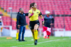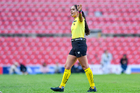 Querétaro, Querétaro, 3 de octubre de 2025. Montserrat Pérez Comellas, árbitra central, durante el partido correspondiente a la jornada 14 del torneo Apertura 2025 de la Liga BBVA MX Femenil, entre el Club Querétaro y las Centellas del Necaxa, realizado en La Corregidora. Foto: Imago7/